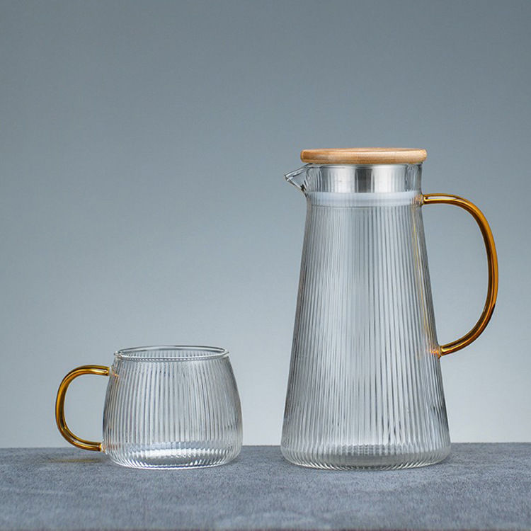 1500ml Stripe line thermal glass Water jug with 420ml cup RGJ06